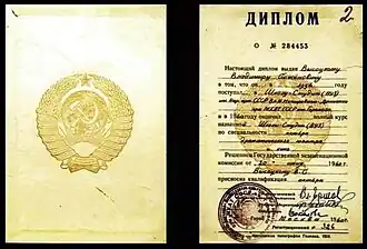 Диплом Владимира Высоцкого (1960)