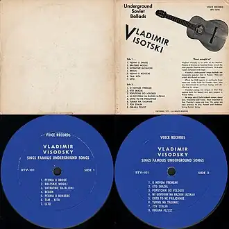 Изначальную известность Высоцкий получил как автор лагерных и дворовых песен[85]. Согласно рассказам поэта, идея первого из написанных им произведений — «Татуировки» — возникла в июле 1961 года в ленинградском автобусе[К. 5]: среди пассажиров автор увидел человека, на грудь которого был нанесён рисунок — женский портрет с надписью «Люба! Я тебя не забуду!» Замысел песни реализовался в течение двух дней, только вместо Любы в тексте появилась Валя: «Не делили мы тебя и не ласкали, / А что любили — так это позади. / Я ношу в душе твой светлый образ, Валя, / А Лёша выколол твой образ на груди»[86][89][87]. «Татуировка» считается первой песней Высоцкого, однако исследователи указывают, что ещё в 1960 году он создал произведение, исключённое впоследствии из основного периода творчества. Речь идёт о песне «Сорок девять дней», имевшей в ранней редакции подзаголовок «Пособие для начинающих и законченных халтурщиков». В основе сюжета — реальная история о том, как четверо советских военнослужащих провели сорок девять дней на самоходной барже, унесённой в открытое море[К. 6][92][93].