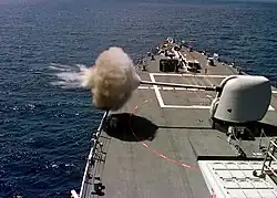 Выстрел из корабельного орудия. Круговые образования — след ударной волны от истекающих пороховых газов.