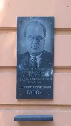 Евгений Никитич Гапон (1904—1950) — советский учёный-химик, специалист в области физикохимии почв, разработчик теории ионного обмена, гидратации и термодинамики.