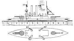 - ↑ Белов А. В. Броненосцы Японии — сер. Боевые корабли мира — СПб, 1998