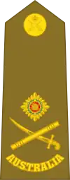 Воинское звание генерал-майор является старшим генеральским званием (в отличие от первичного генеральского звания — бригадный генерал и высшего генеральского звания — (полный) генерал). Учреждено в ВС Австралии по британскому образцу и является званием выше бригадного генерала, но ниже генерал-лейтенанта. Звание генерал-майор соответствует в ВС Австралии должности командира дивизии или приравненных ей. В ВМС Австралии этому званию соответствует звание контр-адмирал (англ. rear admiral), а в ВВС — вице-маршал авиации (англ. air vice-marshal). На поле погона генерал-майора размещены скрещенные сабля и жезл, над ними — «звёздочка» ордена Бани, под ними — надпись на английском языке Australia (англ. Австралия).