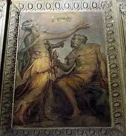 Наслала на него змей, которых младенец удушил. Усыпила Зевса и напустила бурю на Геракла, отбросившую его к Косу, за что Зевс привязал её к небу и подвесил в небесах на золотой верёвке, к ногам были привязаны наковальни (Гомер)[72]. (Цепь, которую надел Зевс на Геру для её усмирения, показывали в Трое[73]). Гера была ранена Гераклом под Пилосом[74].