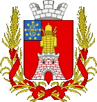 В червленом щите серебряная с червлеными швами зубчатая башня, увенчанная золотыми старинными воинскими доспехами, состоящими из шелома и бахтерца, за которыми накрест положены лук и три копья. В вольной части герб Екатеринославской губернии. Щит украшен серебряною башенною короною о трех зубцах и окружен двумя золотыми колосьями, соединенными Александровскою лентою/