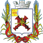В серебряном поле 2 накрест положенные опрокинутые червленые верши, обвязанные золотой лентой. Щит увенчан серебряной башенной короной и окружен золотыми колосьями, соединенными Александровской лентой.