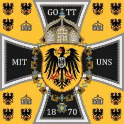 По конституции от 16 апреля 1871 года Германская империя образовывала союзное государство («вечный союз»), состоящее из 25 государств, из них было четыре королевства: Пруссия, Бавария, Вюртемберг и Саксония; 6 великих герцогств: Баден, Мекленбург-Шверин, Гессен, Ольденбург, Саксонский Веймар и Мекленбург-Стрелиц; пять герцогств: Брауншвейг, Ангальт, Саксонский Мейнинген, Саксонский Кобург-Гота и Саксонский Альтенбург; 7 княжеств: Вальдек, Липпе, Шаумбург-Липпе, Шварцбург-Рудольштат, Шварцбург-Зондерсгаузен, Рейс-Шлейц и Рейс-Грейц; три вольных города: Гамбург, Любек и Бремен;[4] и одна имперская область, с императором во главе[5]. Основателями Германской империи считают Отто фон Бисмарка и Вильгельма I Гогенцоллерна. Иногда её называют «Второй рейх»[~ 1]. Кайзеровская Германия прекратила своё существование в 1918 году в результате Ноябрьской революции с последующим отречением Вильгельма II.