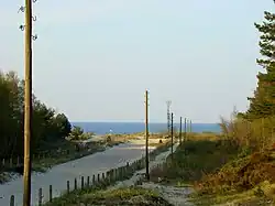 Германско-польская граница, пограничный знак № 923, около Свиноуйсьце, на заднем плане Балтийское море