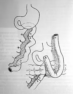 Схема операции Ру — Герцена, опубликованная Цезарем Ру в журнале «Le semaine medicale» в январе 1907 года