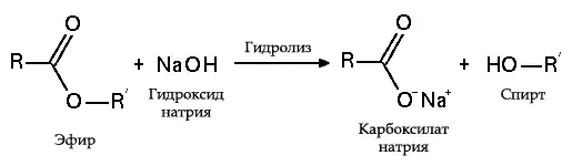 с жирами (омыление) такая реакция необратима, так как получающаяся кислота со щёлочью образует мыло и глицерин. Глицерин впоследствии извлекается из подмыльных щёлоков путём вакуум-выпарки и дополнительной дистилляционной очистки полученных продуктов. Этот способ получения мыла был известен на Ближнем Востоке с VII века.