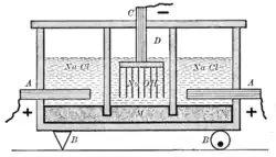 Катодом электролизёра служит поток ртути, прокачиваемой насосом. Аноды — графитовые, угольные или малоизнашивающиеся (ОРТА, ТДМА или другие). Вместе с ртутью через электролизёр непрерывно течёт поток питающего раствор поваренной соли.