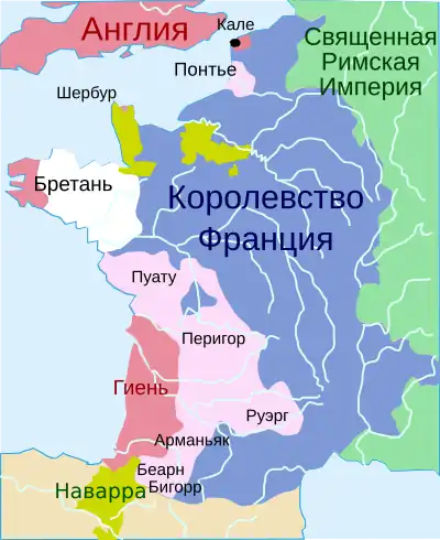 Будучи осколком владений Плантагенетов, Гиень являлась владением английской короны во Франции до 1453 года — когда после завершившего Столетнюю войну Кастийонского сражения она вновь перешла к короне французской. В 1469—1472 годах управлялась как удельное герцогство Карлом Валуа. В 1561 году выделена в губернаторство со столицей в Бордо, которое на тот момент было самым протяжённым во Франции.