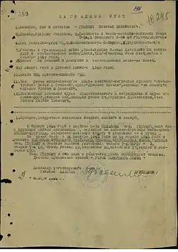 Наградной лист В. М. Гинтовта, ЦАМО. Страницы 1 и 2.