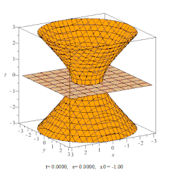 Однополостный гиперболоид является дважды линейчатой поверхностью; если он является гиперболоидом вращения, то он может быть получен вращением прямой вокруг другой прямой, скрещивающейся с ней.