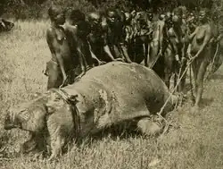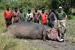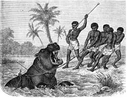 Туземное население Африки во все времена охотилось на бегемотов, но из-за примитивности вооружения добыча бегемотов африканцами не была массовой и не подрывала популяции этих животных. Ко времени начала активной колонизации Африки европейцами (середина XIX века) практически все водоёмы континента к югу от Сахары буквально кишели бегемотами. Появление хорошо вооружённых белых охотников привело к быстрому сокращению численности бегемотов из-за бесконтрольного хищнического отстрела. Ситуацию резко усугубило распространение огнестрельного оружия среди туземцев[25].