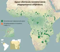 Бегемот в настоящее время обитает только в Африке к югу от Сахары, кроме острова Мадагаскар. В целом ареал бегемотов остался практически неизменным по сравнению с 1959 годом, когда были проведены первые точные исследования, но численность бегемотов сильно сократилась[2]. С того времени они полностью исчезли только на территории ЮАР, за исключением популяции в национальном парке им. Крюгера. Тем не менее, на территории своего ареала бегемот далеко не везде встречается в значительных количествах. Относительно многочисленные и стабильные популяции ещё в 1960-70-е годы существовали в основном на охраняемых территориях, за их пределами же численность гиппопотамов уже тогда была очень небольшой[4], а к началу XXI века ситуация заметно ухудшилась[2]. В 2008 году в Африке насчитывалось, по разным данным, от 125 до 150 тыс. бегемотов, причём, согласно исследованиям специальной группы Международного союза охраны природы (МСОП), наиболее вероятен разброс 125—148 тыс.[43] В 1993 году, по некоторым подсчётам, бегемотов было 157 тыс.[3]