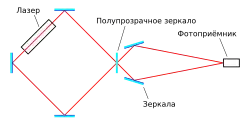 где -разность времён прихода лучей, выпущенных в разных направлениях, — площадь контура, — угловая скорость вращения гироскопа.