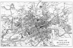 В начале XIX века население продолжало быстрыми темпами увеличиваться, преимущественно за счёт ирландских иммигрантов и переселенцев с севера страны. Почти треть из них оседала в деревнях в окрестностях Глазго и была занята в текстильной промышленности. Остальные, заполонив городские трущобы, нанимались чернорабочими на фабрики и фермы. Следствием притока мигрантов стали перенаселение и антисанитария в бедных кварталах, что приводило к частым эпидемиям оспы, сыпного тифа и холеры[24]. Первые попытки справиться с эпидемиями были предприняты в 1840-е годы, когда по инициативе муниципалитета улицы начали очищаться от нечистот и других рассадников инфекции. Затем в 1859 году была запущена новая система водоснабжения из озера Лох-Катрин; в 1866 году, хотя и недостаточно эффективно, заработала программа по расчищению трущоб, условия жизни в которых в то время были признаны худшими в Европе[25].