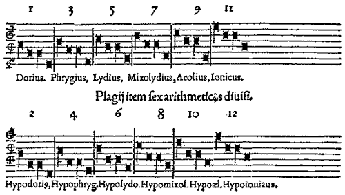 Между ладами существует некое тайное родство (occulta cognatio), и один лад происходит от другого — и это вовсе не по прихоти симфонетов[9], а по природе вещей (rerum natura). Мы видели, когда тенор [многоголосного сочинения] установлен в гиподорийском ладу, бас же в дорийском, а часто и в эолийском. <…> Когда тенор фригийский, то бас и кантус часто случаются эолийские, что можно видеть в Плачах Магдалины <…>, а иногда кантус бывает и гипофригийский. <…> Также, когда в теноре миксолидийский лад, кантус и бас в гипомиксолидийском (то есть дорийском по звукоряду)[10] etc.