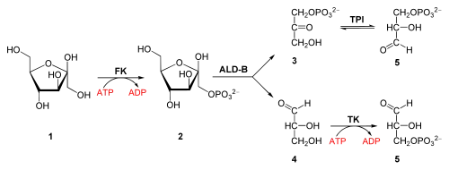Наконец, у анаэробных бактерий существуют дополнительные пути разложения углеводов. В частности, бактерии, предпочитающие пентозы в качестве субстрата, превращают пентозы и гексозы в ксилулозо-5-фосфат, который далее расщепляется фосфокетолазой[37].