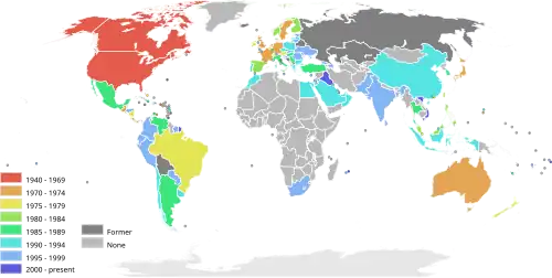 Устранением барьеров для международной торговли с 1947 года занималось Генеральное соглашение по тарифам и торговле (GATT) — серия соглашений между основными капиталистическими и развивающимися странами. Но действительный прорыв в этом направлении произошёл после «Кеннеди-раунда» (серии международных конференций в рамках GATT в 1964—1967 гг.). Как пишет экономический историк П. Бэрок, «в Западной Европе действительная либерализация торговли произошла после Кеннеди-раунда»[14]. В 1995 году 75 участников GATT образовали Всемирную торговую организацию (ВТО).