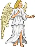 | Ангел | символ чистоты, веры, одна из популярных фигур. Обычно используется в качестве щитодержателя, хотя нередко встречается и как гербовая фигура, часто использовался в виде покровителя, защитника | ![]() |