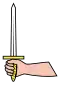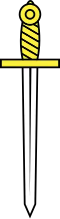 | Меч | старинное оружие в виде длинного обоюдоострого ножа с рукоятью и эфесом. Символизирует готовность к защите отечества, рода, города от врагов, а также участие в сражениях; справедливость в исполнении закона, высшую форму власти. В гербах часто изображается и так называемый огненный (пламенеющий) меч — символ не только военного, но и духовного оружия, которое символизирует просветительство, свет, добро | |