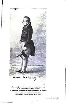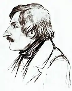 Никола́й Васи́льевич Го́голь (при рождении Яно́вский, с 1821 года — Го́голь-Яно́вский; с 1822 года — Го́голь; 20 марта [1 апреля] 1809, Сорочинцы, Миргородский уезд, Полтавская губерния — 21 февраля [4 марта] 1852, Москва) — прозаик, драматург, критик, публицист, писавший на русском языке. Классик русской литературы[7][8], принадлежащий к русской и украинской культурам[9].