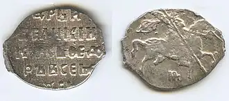 - ↑ Спасский И. Г. Русская монетная система. — 4-е изд. — Л., 1970. — С. 114, 115. — Рис. 9 Архивная копия от 8 июля 2012 на Wayback Machine.