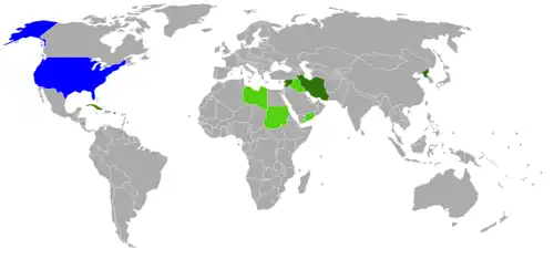 По состоянию на начало 2025 года в список входят Сирия, Куба, Иран и Северная Корея[2]. Ранее в списке были Ирак, Ливия, Южный Йемен и Судан.