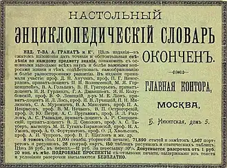 После революции выпуск словаря продолжился. В итоге было подготовлено 58 томов, из которых 56-й том не вышел (по цензурным причинам)[уточнить], а 54-й и 58-й были выпущены уже «Советской энциклопедией».
