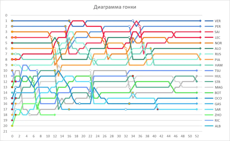 | 13 | 18 | ▲5 | 20 | Haas-Ferrari | P | 52 | +1 круг | 157,813 | 2 | MMH | ||