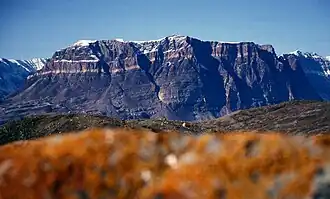 Участки непокрытой льдом суши протягиваются в виде непрерывной полосы вдоль берегов острова, достигая местами ширины 200—250 км. Наиболее значительные территории они занимают на юго-западе и севере острова и представляют собой плоскогорья высотой 400—600 м, чередующиеся с горными массивами высотой до 1700—2000 м. Восточное побережье образуют покрытые горными ледниками хребты, в одном из которых — хребет Уоткинса — расположена наиболее высокая вершина Гренландии и всей Арктики — г. Гунбьёрн, 3694 м. На западе древний кристаллический щит выходит на поверхность, образуя широкий, но прерывистый пояс массивов и нагорий побережья моря Баффина. Северный берег Гренландии — Земля Пири — также свободен от ледяного покрова, ввиду низкой влажности воздуха, неспособного восполнять расход льда, а также малоподвижности северного края ледового щита.