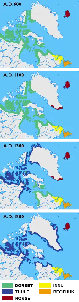 В 983 году на юге Гренландии были основаны норманнские (исландские) колонии, просуществовавшие до XV века. В XI веке население Гренландии приняло христианство (в 1126 году в Гренландии основано первое епископство). С 1262 года до начала XVIII века Гренландия формально принадлежала Норвегии (однако с XIV века контакты с Гренландией прекратились, а в XV веке норманнское население острова частично вымерло, частично смешалось с эскимосами).