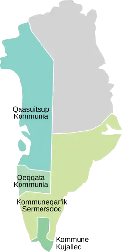В 1973 Гренландия вступила в Европейское экономическое сообщество вместе с Данией. В ходе референдума 1982 года, однако бо́льшая часть населения острова проголосовала за выход из ЕЭС, состоявшийся в 1985 году. Сегодняшняя Гренландия делится на 5 коммун: Аванаата, Кекерталик, Кекката, Куяллек и Сермерсоок.