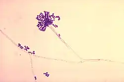 • Формирование новых клеток (цитокинез) происходит в мицелии грибов независимо от деления ядер (кариокинеза), это обусловливает возможность формирования многоядерных клеток. Рост клеток апикальный, то есть происходит только на концах гиф. Этим гиф отличается, например, от нитчатых водорослей, у которых деление клетки может происходить не только на конце нити.