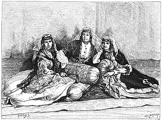 Гурийские женщины, 1887. Женщина справа — Наталья Гуриели (урожденная Майсурадзе), жена князя Давида Гуриели. Запечатлена в возрасте 22 лет. Считалась одной из первых красавиц своего времени, её часто фотографировали и писали с неё портреты, в том числе в национальном костюме. В 25 лет она овдовела и до конца своих дней носила траур, больше уже не позировала, отошла от светской жизни, занималась детьми, потом внуками. Вдовство растянулось более чем на 50 лет.