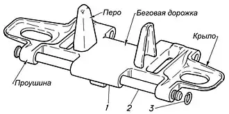 Каждая гусеница состоит из N-количества штампованных звеньев(траков) (рис. 3), соединённых шарнирно друг с другом при помощи пальцев.