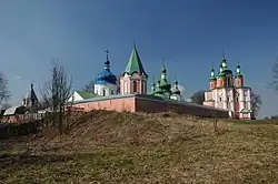 23 мая 1675 года Троицкая церковь была освящена архиепископом Черниговским Лазарем Барановичем. В 1670—1680 гг. монастырю всячески помогали и о нём заботились гетманы Иван Самойлович и Иван Мазепа, прилуцкий полковник Лазарь Горленко, а в 1690-х гг. его сын, также прилуцкий полковник Дмитрий Лазаревич Горленко. Монастырь украсился новыми монументальными сооружениями, обогащается новыми владениями. На средства полковника Дмитрия Горленко возвели высокие кирпичные стены вокруг монастыря, построили каменные надвратные церкви ― Николаевскую с запада и Петропавловскую с востока[3].