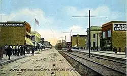 Центр города Гэри разделён улицей носящее название Бродвей и делящий на два отдельных района. Первоначально город Гэри состоял из таких районов, как Ист-Сайда, Вест-Сайда, Саут-Сайда (район к югу от железнодорожных путей в районе 9-й авеню) и Глен-Парка, расположенного дальше на юг вдоль Бродвея. Ист-Сайд был разграничен улицами, названными в честь штатов в порядке их принятия в Союз. В этом районе располагались в основном деревянные каркасные дома, одни из самых ранних в городе, и в XX веке он стал известен благодаря этническому населению из Европы и большим семьям. Односемейные дома имели повторяющийся дизайн, который чередовался от одной улицы к другой, причём некоторые улицы выглядели очень похоже. Среди наиболее примечательных зданий Ист-Сайда — Мемориал Аудиториум (большой гражданский зал из красного кирпича и камня, место проведения многочисленных мероприятий, концертов и выпускных вечеров), театр «Палас», школа Эмерсона, церковь Святого Луки, универмаги. Все они выходили на Бродвей — главную улицу, разделявшую Гэри.
