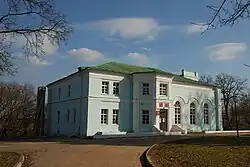 С крутого берега, где стоит дворец, открывается красивый вид на Днепр, лес и широкие заливные луга.