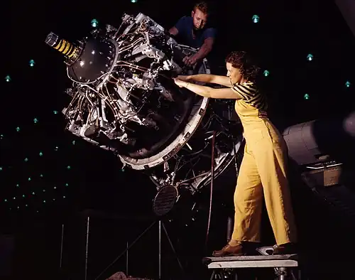 Поршневой двигатель звездообразной компоновки на сборке (США, 1942 год)