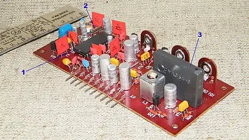 - Декодер с параллельными каналами цветности для разных систем. Декодер содержит несколько независимых каналов цветности. В случае опознавания одним из каналов «своей» системы цветности, он открывается, а остальные каналы блокируются, чтобы исключить взаимные искажения[31]. Такое решение применялось в телевизорах с 1980 года. Фирмой Philips производились микросхемы канала цветности PAL TDA3510 и канала цветности SECAM TDA3530. Их аналоги под обозначениями К174ХА28 и К174ХА31 применялись в советских телевизорах третьего и четвёртого поколений (например, «Рубин-Тесла Ц-392»[32] и «Рубин 51ТЦ-402Д»[33])