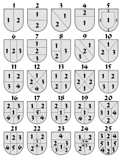 - 1 2 3 4 5 Разделение щита и особенности блазонирования Архивная копия от 27 августа 2016 на Wayback Machine // Сайт «Экскурс в геральдику». (Дата обращения: 18 ноября 2011)