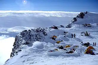 Штурмовой лагерь на западном контрфорсе (West Buttress) (этим маршрутом поднималось большинство экспедиций). Фото 2001 года