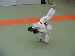 В дзюдо применяются броски через спину или плечо (например, Иппон Сэойнагэ — бросок через спину захватом руки на плечо), через бедро; а также подножки, подсечки и подхваты.