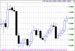 График «Японские свечи» валютной пары доллар США-швейцарский франк