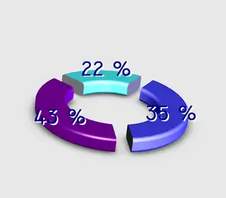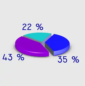 1. «Отрёхмеренные» линейные, секторные и прочие. Имеют «солидный» вид, из-за этого часто используются в телевидении и бизнесе, однако тенденциозно показывают информацию: из-за незначащих поверхностей (боковой поверхности цилиндра в секторной, торца в столбцовой) и искажений трёхмерности закрашенная площадь не соответствует отображаемой величине. В частности, на втором рисунке искажения трёхмерности приводят к тому, что 22 % с виду почти того же размера, что и 35 %, а на третьем — 22 % почти вдвое меньше.