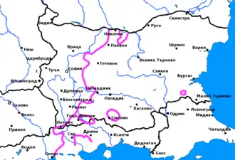 - ↑ Карта на диалектната делитба на българския език (болг.). Институт болгарского языка. Архивировано 2 мая 2019 года. (Дата обращения: 30 января 2016)