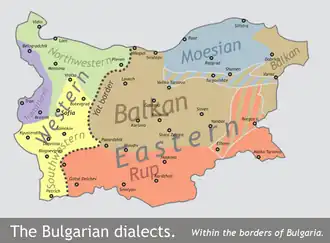 Диале́кты болга́рского языка́ (болг. български диалекти, български говори, български наречия) — территориальные разновидности болгарского языка, распространённые на территории Болгарии и в ряде районов соседних с Болгарией стран: Северной Македонии, Сербии, Румынии, Молдавии, Греции, Турции и Украины. Выделяются два основных диалектных ареала: восточноболгарский и западноболгарский[2][3][4]. Вместе с македонскими и торлакскими болгарские диалекты образуют болгарско-македонский единый непрерывный диалектный континуум[5][6].