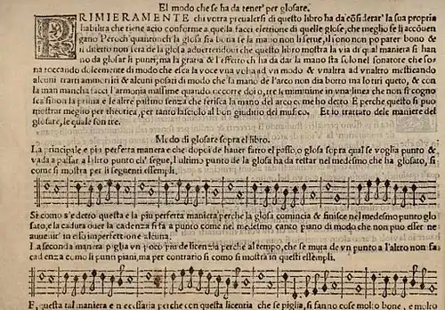 В XVI—XVII веках диминуция (синонимы: в Италии — passagio, в Испании — glosa, в Англии — division, во Франции — double) — приём орнаментики, замена оригинальной большой длительности пассажем из нот меньшей длительности (в сумме составлящих величину оригинальной длительности). Изначально диминуция была импровизационной (например, в Папской капелле в Риме), позже (в сочинениях К. Меруло, Дж. Габриели и А. Габриели, А. Кабесона, А. Корелли и многих других) выписывалась в нотах.